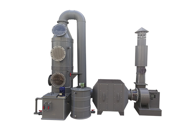 PP廢氣塔工作原理:對于腐蝕性氣體(如酸、堿性廢氣)的治理,多采用液體吸收法治理。采用液體吸收法治理廢氣,pp廢氣塔具有結(jié)構(gòu)簡單、能耗低、凈化效率高和適用范圍廣的特點,能有效去除氯化氫氣體(HCl)、氟化氫氣體(HF)、氨氣(NH3)、硫酸霧(H2SO4)、鉻酸霧、氰氫酸氣體(HCN)、堿蒸氣(NaOH)、硫化氫氣體(H2S)、福爾馬林(HCHO)等水溶性氣體。酸霧廢氣由風(fēng)管引入廢氣塔,經(jīng)過填料層時,廢氣與吸收液進行氣液兩相充分接觸吸收中和反應(yīng),酸霧廢氣經(jīng)過凈化后,再經(jīng)除霧板脫水除霧后由風(fēng)機排入大氣。吸收液在廢氣塔底經(jīng)水泵增壓后在塔頂噴淋而下,最后回流至塔底循環(huán)使用。凈化后的酸霧廢氣達(dá)到地方排放標(biāo)準(zhǔn)的排放要求,低于國家排放標(biāo)準(zhǔn)。