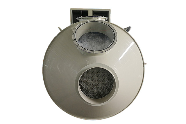 酸霧凈化塔(pp酸霧凈化塔)具有效率高、耐腐蝕性強,高強度、低噪聲、耗電省、體積小,拆裝維修方便,輕巧耐用,外形美觀大方等優(yōu)點。--酸霧凈化塔具有凈化效率高、操作管理簡單、使用壽命長的酸、堿性廢氣凈化工藝與設備。pp酸霧凈化塔具有結(jié)構(gòu)簡單、能耗低、凈化效率高和適用范圍廣的特點,能有效去除氯化氫氣體(HCl)、硝酸氣體(HNO3)、氟化氫氣體(HF)、氨氣(NH3)、硫酸霧(H2SO4)、鉻酸(CrO3)、氰氫酸氣體(HCN)、堿蒸氣(NaOH)、硫化氫氣體(H2S)、等水溶性氣體。采用氫氧化鈉為吸收中和液,溶液濃度為8%-16%。 酸霧廢氣由風管引入廢氣凈化塔,經(jīng)過填料層,廢氣與氫氧化鈉吸收液進行氣液兩相充分接觸吸收中和反應,酸霧廢氣經(jīng)過酸霧凈化塔凈化后,再經(jīng)除霧板脫水除霧后由風機排入大氣。吸收液在廢氣塔底部經(jīng)水泵增壓后在廢氣塔頂部噴淋而下,最后回流至廢氣塔底部循環(huán)使用。酸霧廢氣經(jīng)過凈化后達到排放標準要求。